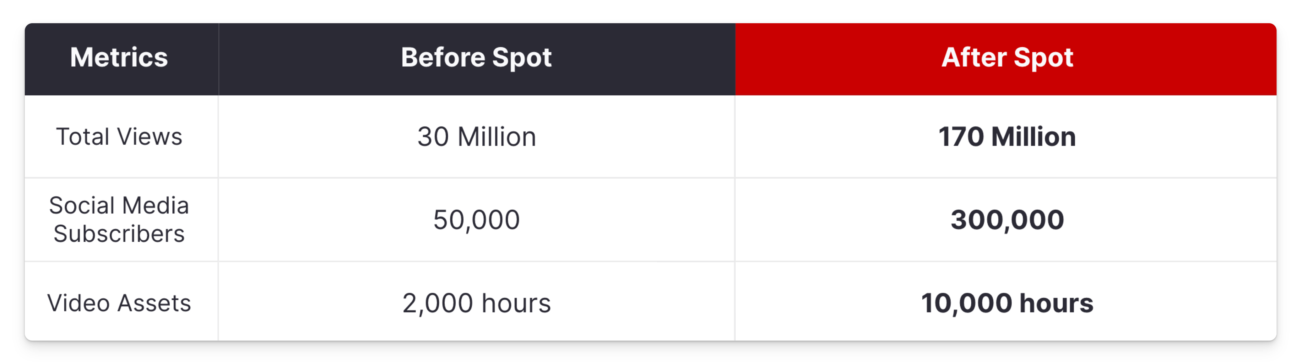 成果: 達成1.7億次觀看、30萬訂閱,並顯著提升影像資產管理和社群媒體互動